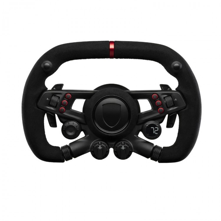 * The wheel has been carefully optimized for sim racing, with its comfortable 310 mm diameter, practical button layout, and tactile paddles and rotaries.