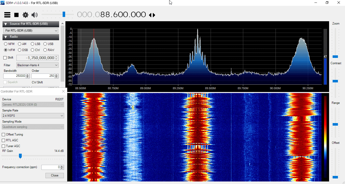 Blocks the broadcast FM band between 88-108 MHz with over 50dB of attenuation. Insertion loss is less than 0.5 dB between 0-1 GHz, and mostly less than 1.5 dB between 1-3 GHz. A broadcast FM block filter can help if you have very strong broadcasts in your area that are overloading the SDR dongle. Also known as "FM Trap". Note, for RX use only.