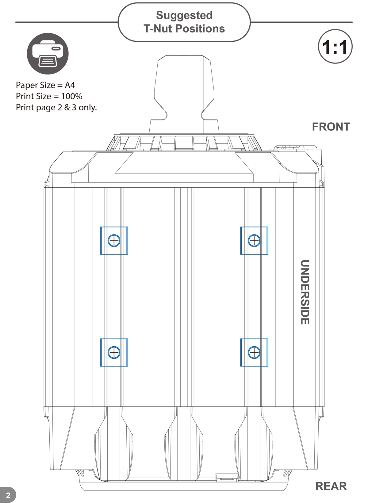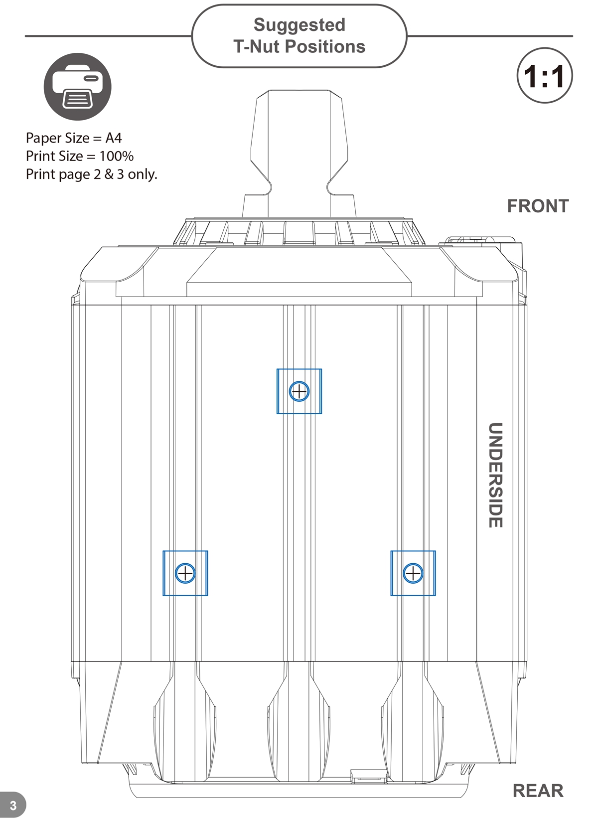 * T-nut rail system on sides and bottom for easily adjustable hard-mounting