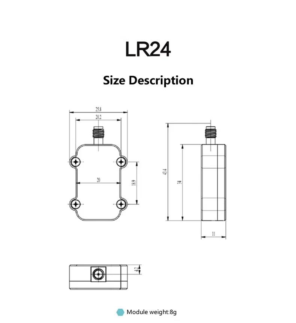 - Although the interference in the 2.4G frequency band varies in different environments, the anti-interference ability of LR24 data transmission is already considered excellent among similar products, and it is rare to encounter situations where the nominal 10km is only 1-2km or even a few hundred meters in reality.