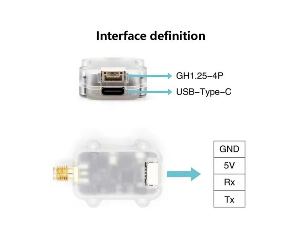 - Communication interface: UART (3.3V TTL) - GH1.25-4P/USB-Type-C