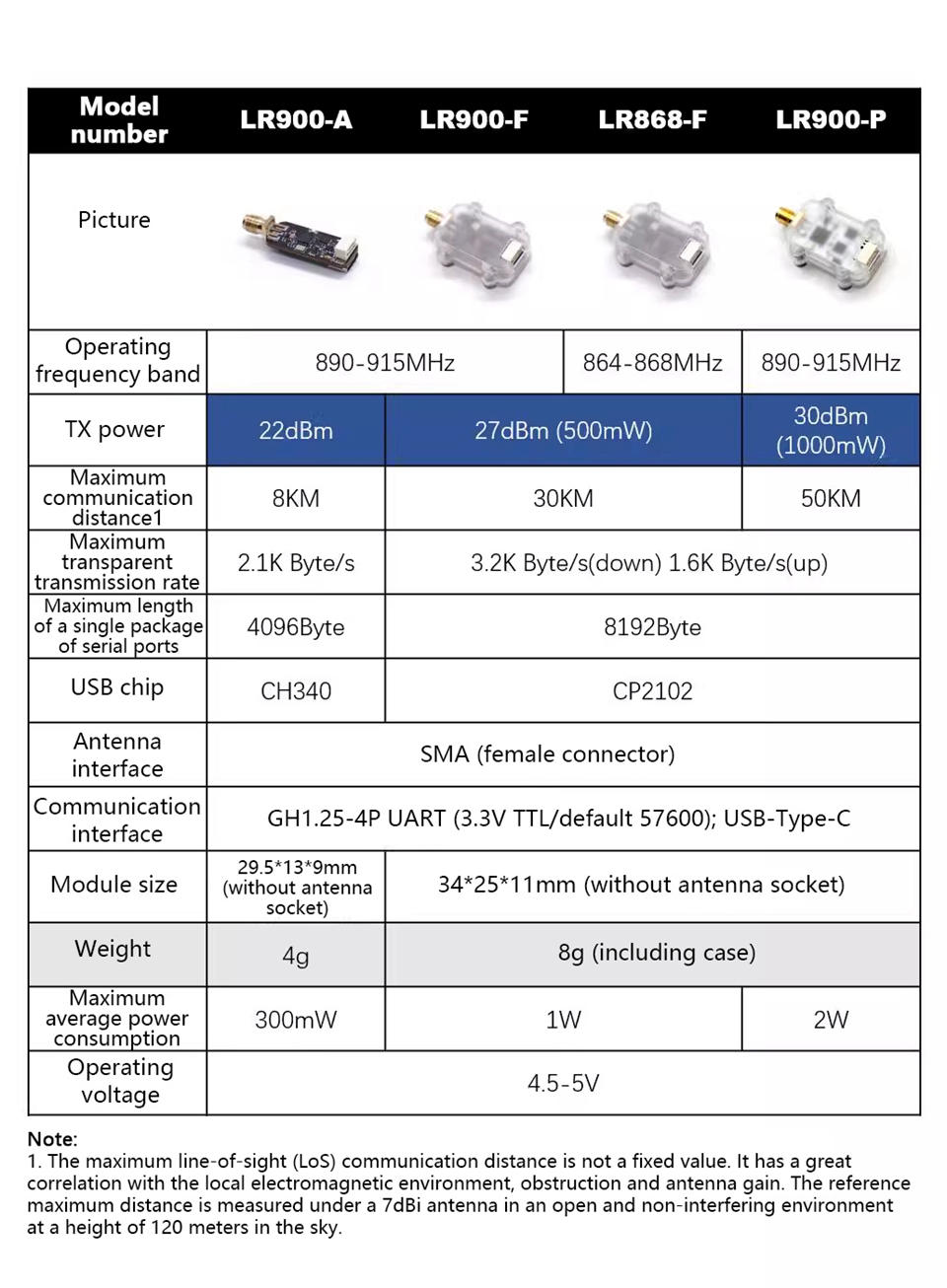 - Transmission power: 30dBm (1000mW)