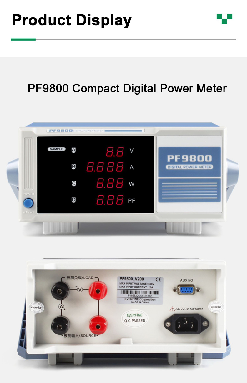 * Display: Four-window display — Voltage, Current, Power, Power Factor