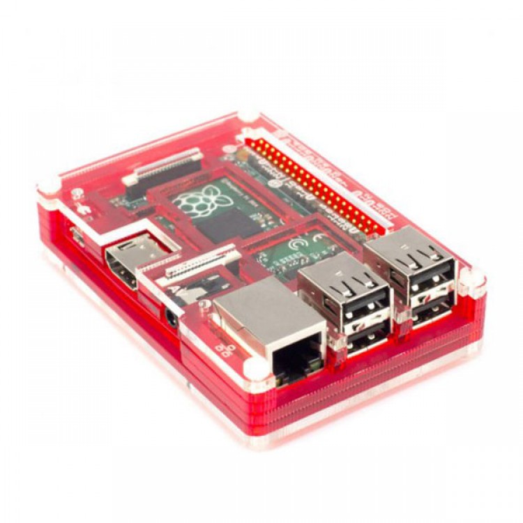 - Each layer is laser-cut from colourful high-quality cast acrylic and once stacked they securely contain a Raspberry Pi Model B+ while leaving the primary ports, including the camera port and GPIO, accessible.