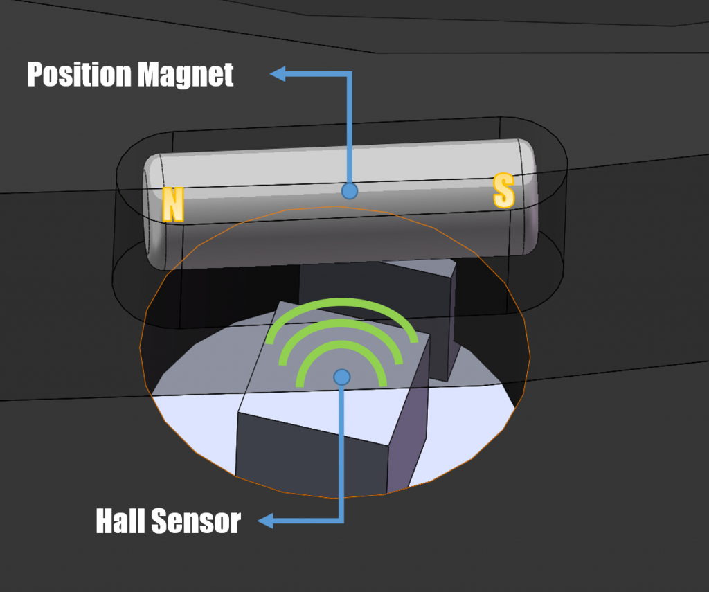 Traditional infrared sensor scans the positioning hole to locate, and the positioning accuracy depends on the size of the positioning hole. The smaller the hole, the higher the accuracy. But the aperture must have a diameter of at least 1mm, otherwise it is difficult to locate and produce. However, if a magnet is used on the filter disc, the Hall sensor can detect the center of the magnet and is much more accurate than the IR sensor.