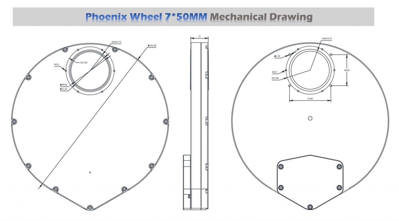 Player One Phoenix Filter Wheel (7x50MM) w/ 49mm Clear Aperture Supports 50mm Unmounted Filter