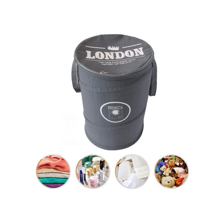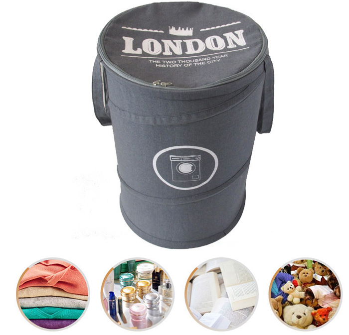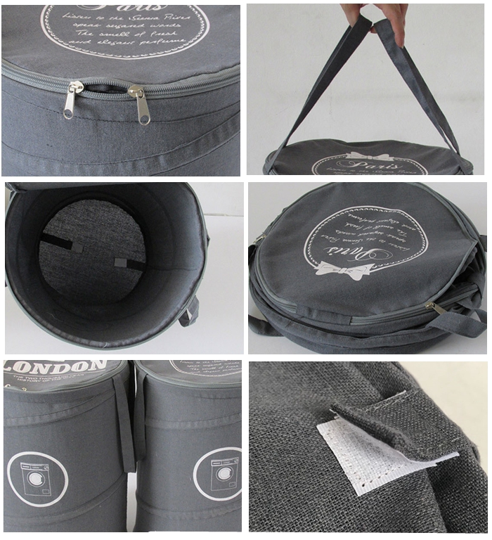 Pop Up Laundry Hamper Foldable Laundry Basket Round Big Bag Zipper Cotton Linen Material