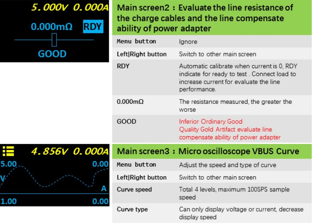 - OWER-Z KM001 This test table integrates a total of six USB ports,to meet the needs of most of the players test.Another feature of it is to support ripple testing.Its function is similar to a micro-oscilloscope,you can test less than 50Hz ripple,the daily use of enough.
