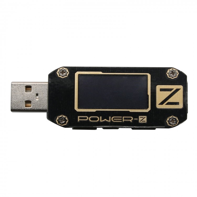 - POWER-Z KM001 comes with an OLED screen resolution of 128 × 64.The front panel with black glass fiber gold-plated,four corners of the use of immersion gold hole fixed,the appearance and size of the USB table is no different from ordinary,ordinary users will soon be able to get started.USB table built-in a measurement accuracy of 0.02%,temperature drift for the 10ppm voltage and current ADC dedicated chip.At the same time in order to ensure the accuracy of the current,but also integrates a typical temperature drift of 20ppm,power of 3W high-quality sampling resistor. Up to 0.01% error.