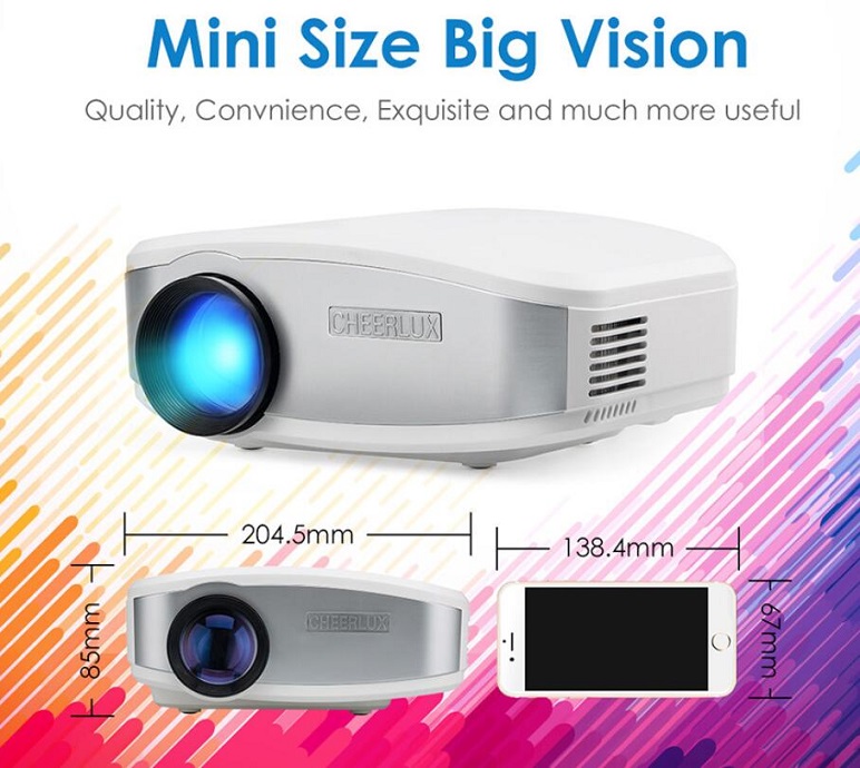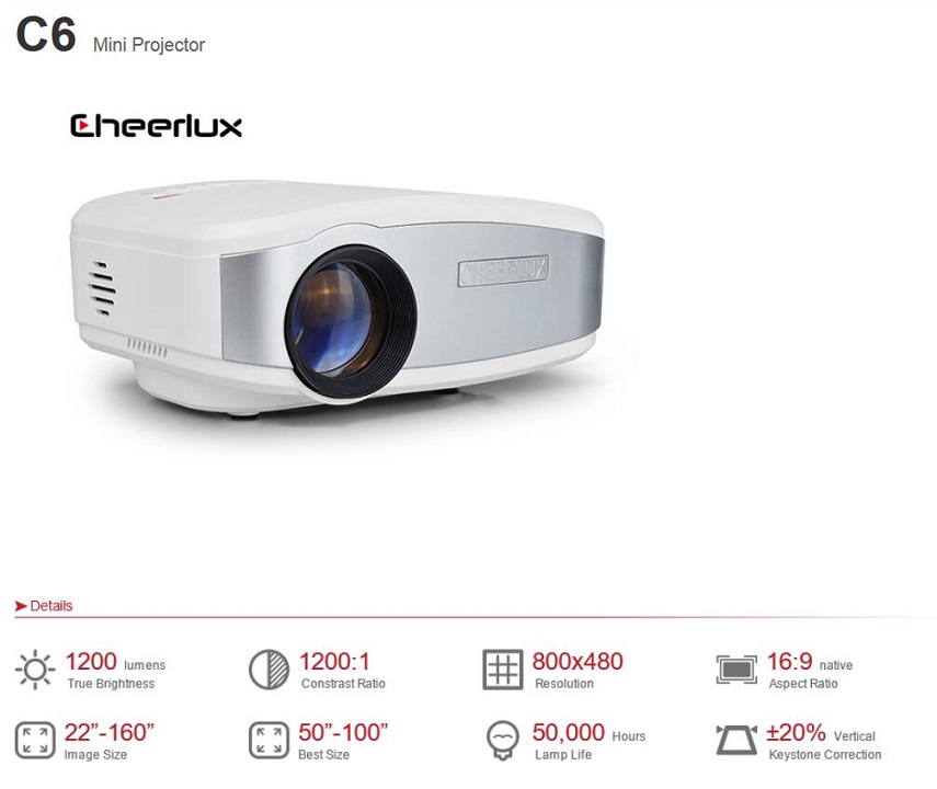 Features:Ideal For:Home theater Cinema watch Movie,TV program and football game night,connect with game device to display.It can project 50"-120" screen,Projection distance is 59"-134" C6 has Keystone and Flip you can rear,front projection.