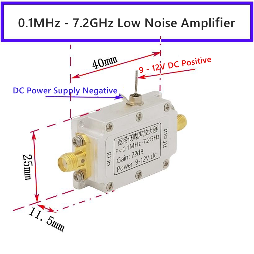 0.1MHz-7.2GHz RF Module LNA Low Noise Amplifier 22dB High Quality RF Accessory with SMA Female Connector