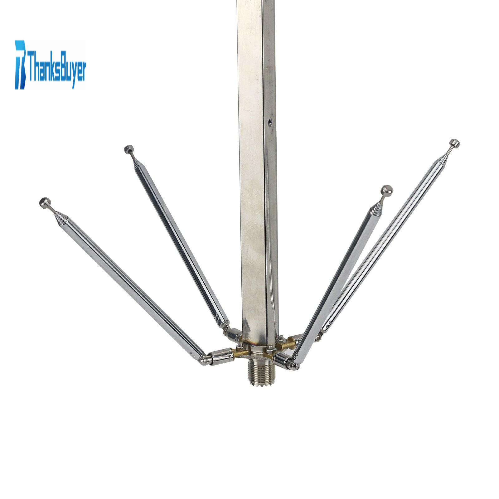 It consists of 4pcs earth terminals, a choke sleeve square tube and a vertical telescopic antenna. When used for receiving, if you do not know the calculation and adjustment method of the antenna length and frequency wavelength, you only need to erect the antenna vertically, pull out the telescopic antenna in the middle, and tilt the antenna counterpoise downward in an umbrella-like angle of about 45 degrees. No special requirements. When erecting, a steel pipe or a wooden rod can be used to tie the stainless steel square tube of the antenna to erect the antenna vertically. The installation position of the antenna has a great influence on the effect. The higher the antenna position, the more open the center and the surrounding area, and the better the working effect.