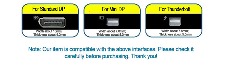 - It fits for Mini DP and thunderbolt interfaces.