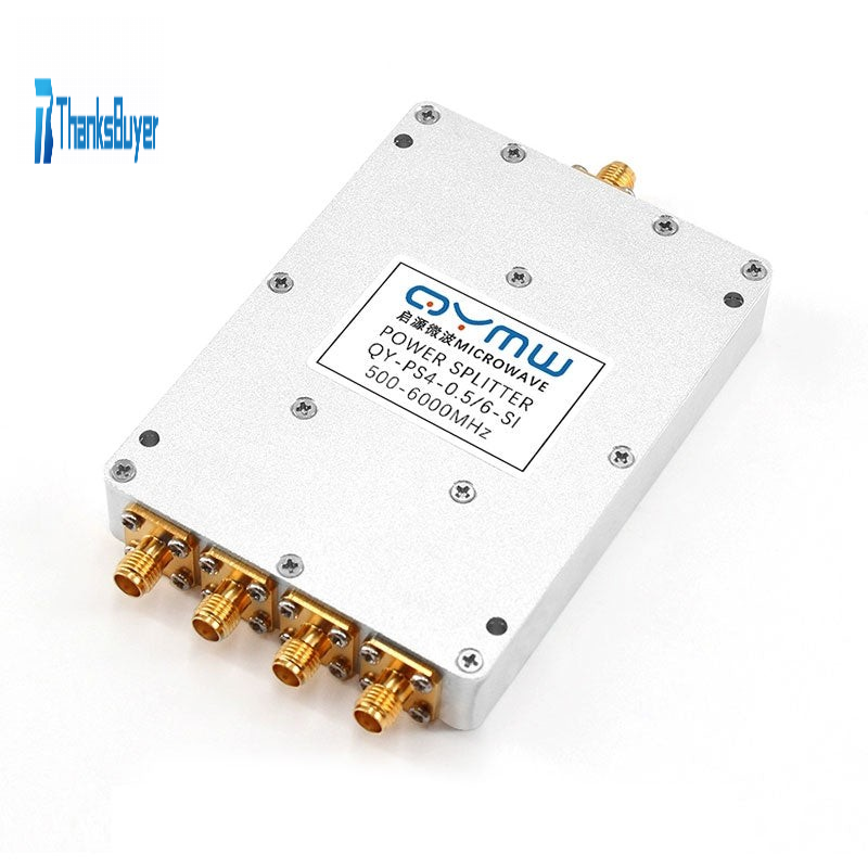 This is a 0.5~6GHz 4-way SMA RF power divider. Its shell adopts aluminum alloy sandblasting oxidation process, which has strong oxidation resistance.
