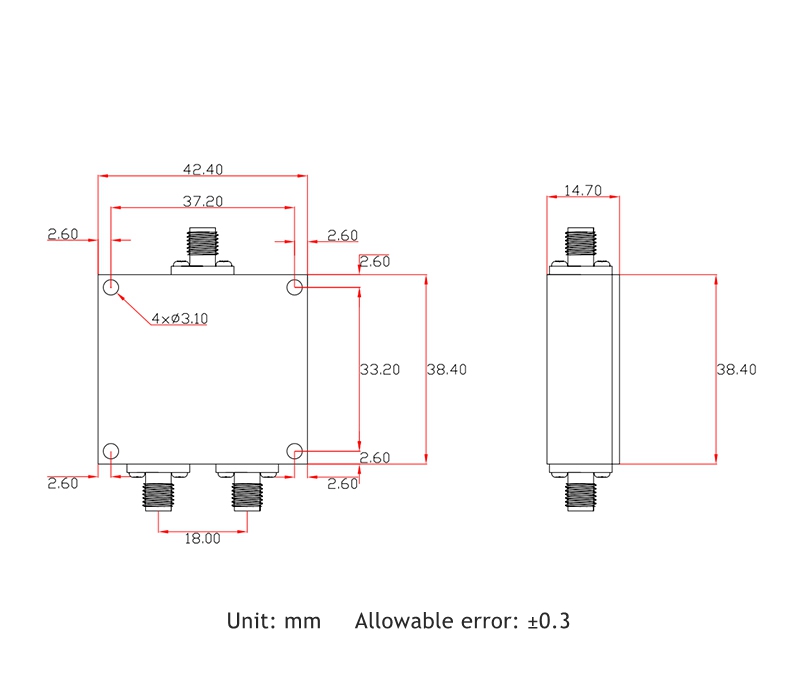 - Insertion loss: ≤0.5dB (excluding the theoretical loss 3.0dB)