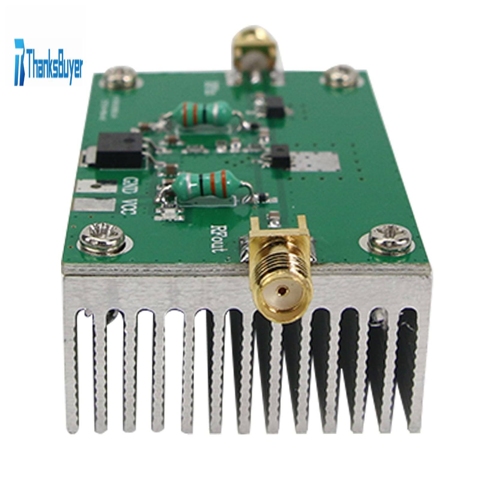 This wideband RF low-power amplifier is suitable for various types of radio transmission, such as shortwave FM wireless remote control, FM radio transmission, amateur radio 135-175MHz, and 380-470MHz walkie-talkie. When the low frequency input is 1mW, it can output a maximum of 1.6W. When inputting 512MHz, it can output a maximum of 1.0W. Equipped with heat sink, it can work stably for a long time.