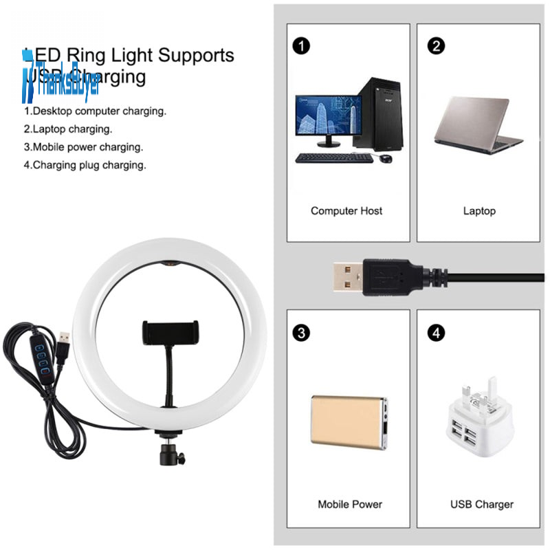 5. The USB ports can be used with multiple devices, such as connect computer host, laptop, mobile power and USB charger. You will be able to enjoy LED ring light at any time free.