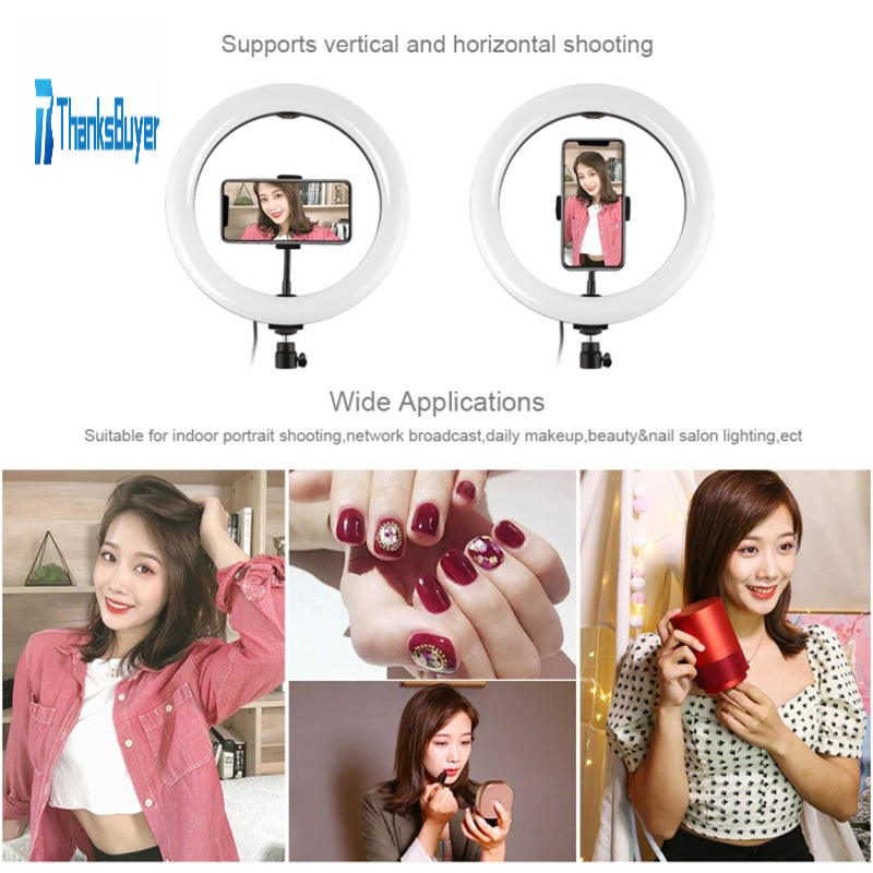 1. LED ring light can be mounted on the holder and take it anywhere, it can also be removed from the stand at any time, the tripod ball head can 360 degree rotating can free to adjust to any angle.