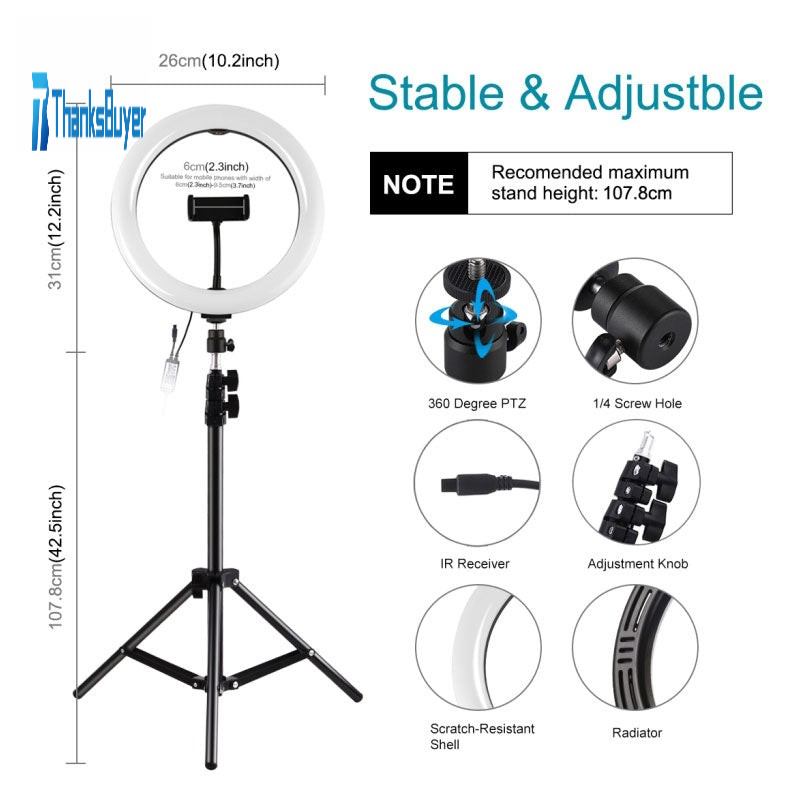 10.2" LED Ring Light with Tripod Stand & Remote Control & Phone Clamp For Livestream PKT3051B
