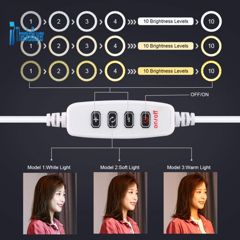4. 3 colors lighting mode adjustable brightness for your choose,you can adjust the color and brightness very easily, good brightness can be achieved without installing extra colorful filters. Three colors of soft natural light illuminate your beauty in different occasions.