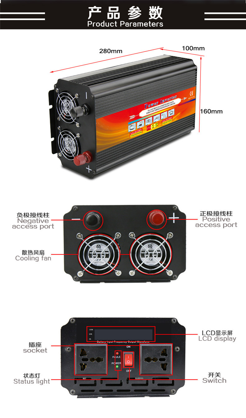 - Multiple Protections: over-load protection, short-circuit protection, low-voltage protection, high-temperature protection, over-voltage protection and over-current protection