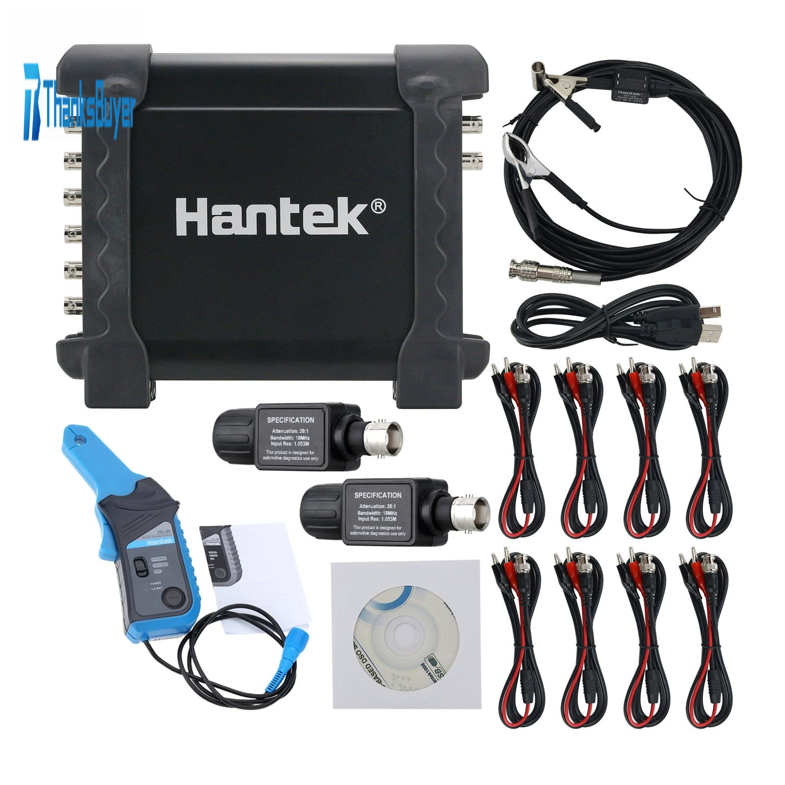 1008C 8-Channel Hantek Oscilloscope + CC-65 AC/DC Current Clamp + 2 HT-201 Oscilloscope Attenuators