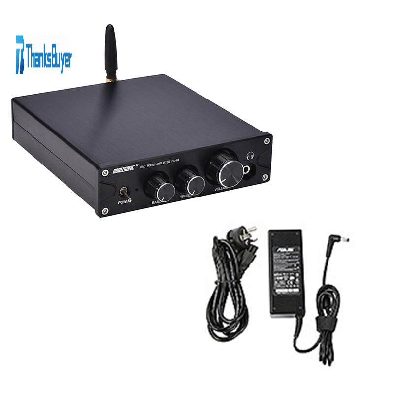 100W*2 Bluetooth HiFi Amplifier DAC Headphone Amplifier Amp BT5.0 PA-01 Black + Power Cord Adapter