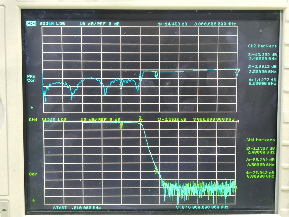 - Stop band: DC-2.7GHz, 3.9 - 6GHz