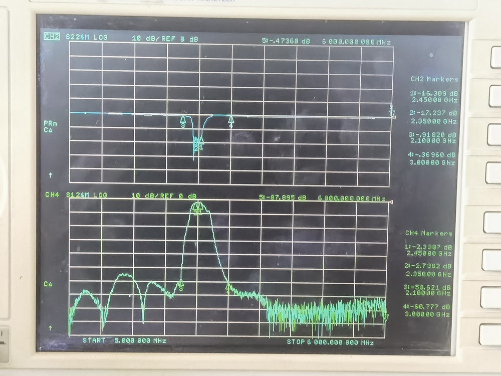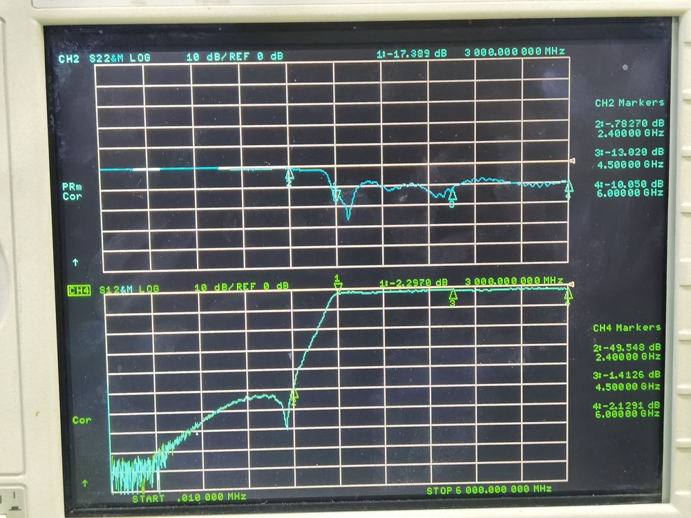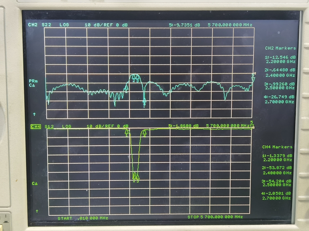 - Stop band: DC-2.2GHz, 3.3 - 6GHz