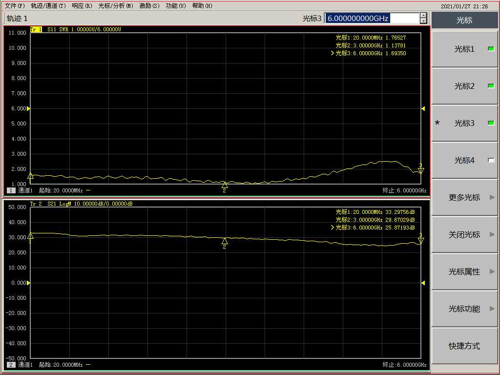 4. Gain: 30DB (refer to the measured curve for different frequencies)