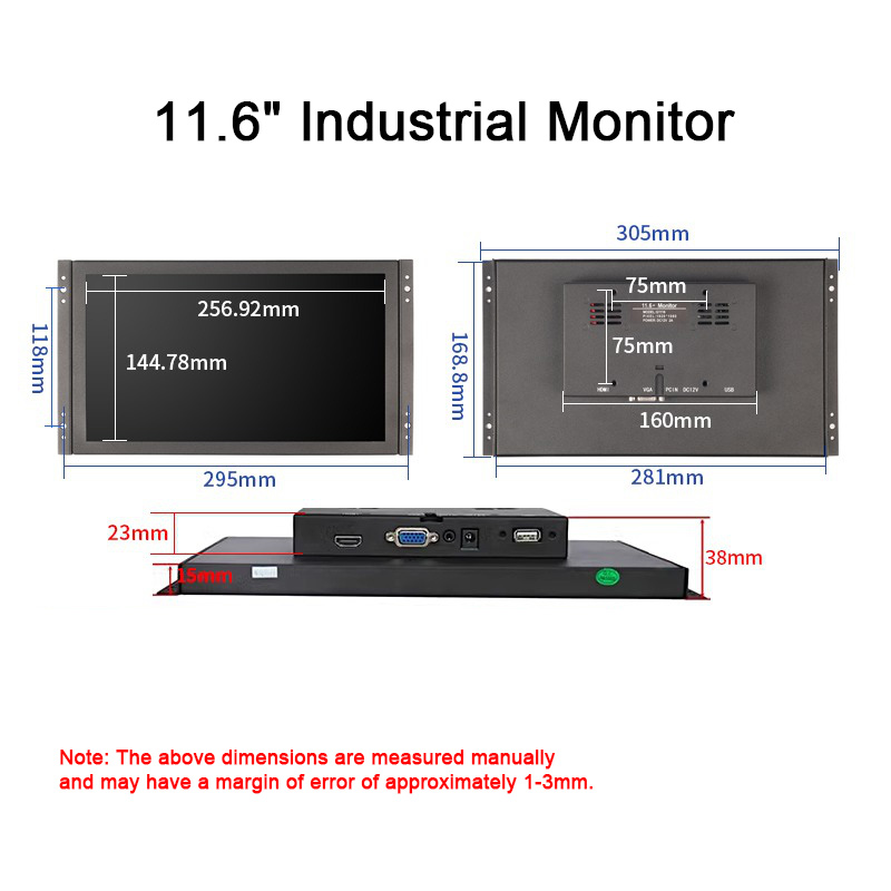 11.6" 1920×1080 Industrial Monitor Capacitive Touch Screen with VGA HDMI-Compatible and USB Ports