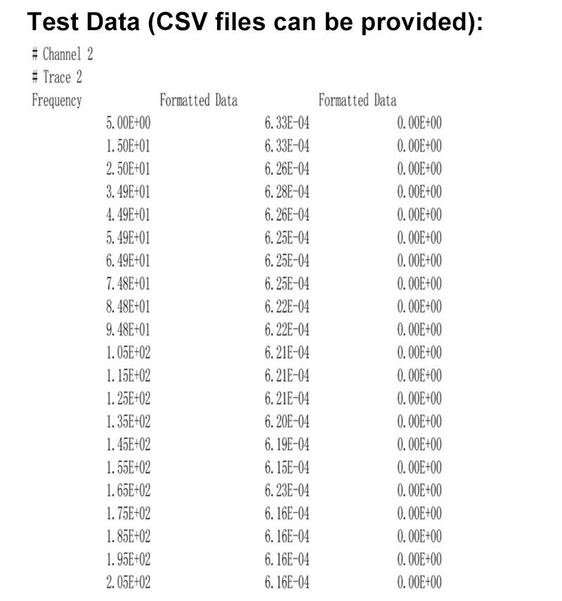 * E506IB network analyzer is used as the test equipment, and the default impedance is 50 ohms.