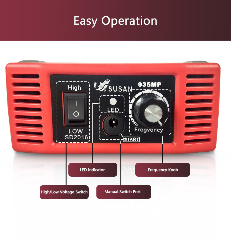 - Features: Current Limit Protection; Intelligent Pulse; Adjustable Frequency by Virtue of a Frequency Knob