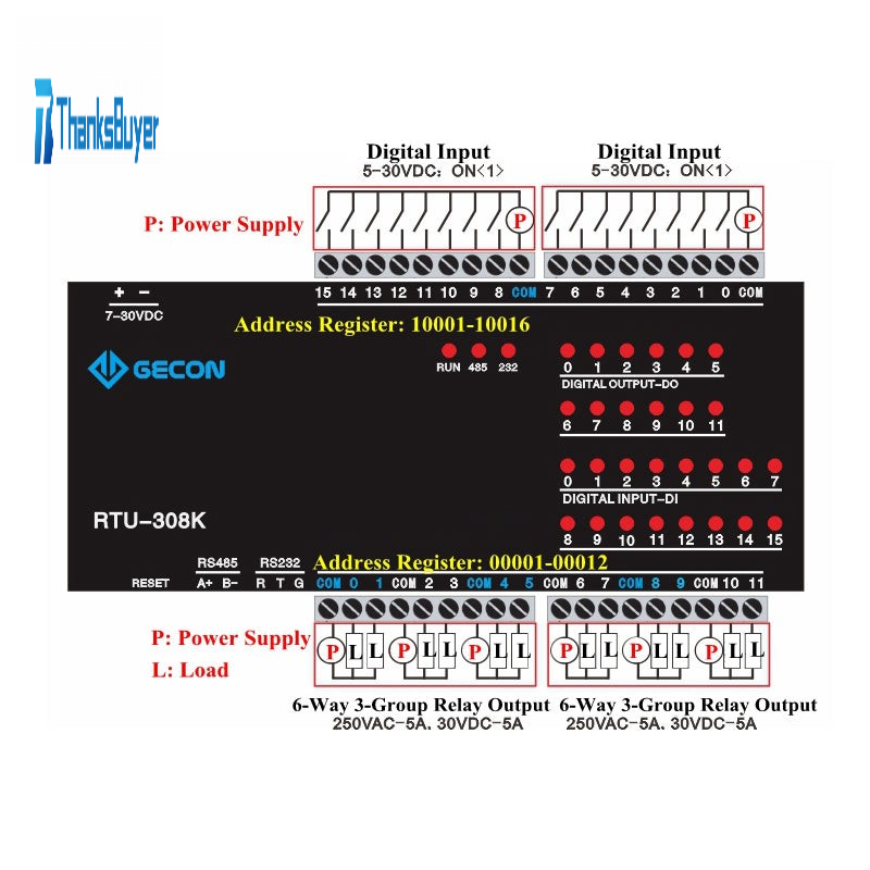 12DO 16DI Data Acquisition For Modbus RTU Industrial Controller RTU-308K 16DI + 12DO [RS485 + RS232]