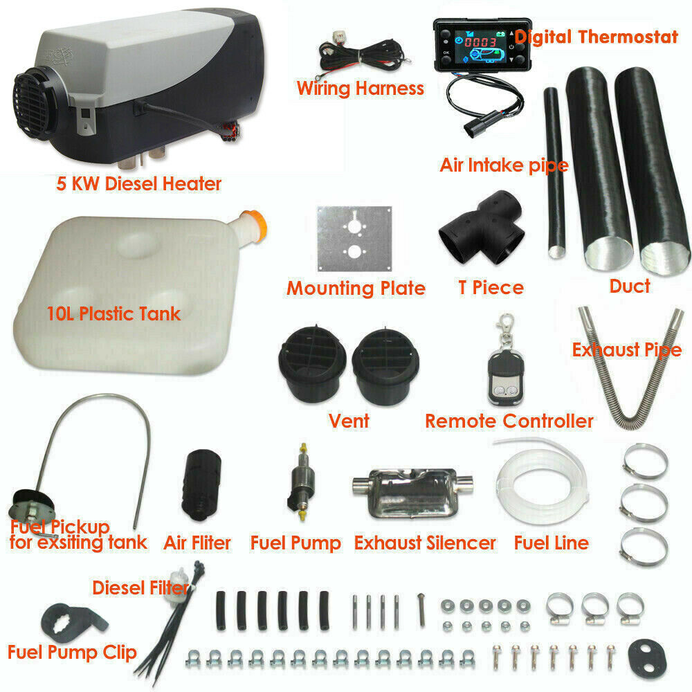 12V 5KW Diesel Air Heater Remote Control Thermostat 10L Plastic Tank Kit for Caravan Motorhome RV