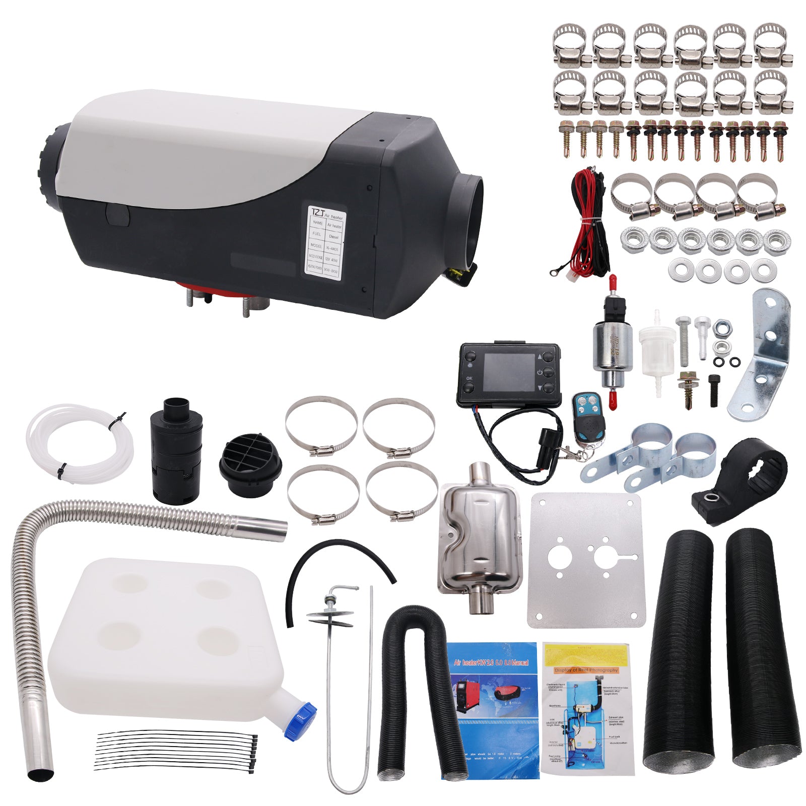 12V 8KW Diesel Air Heater Tank Vent Duct LCD Thermostat Silencer for Motorhome