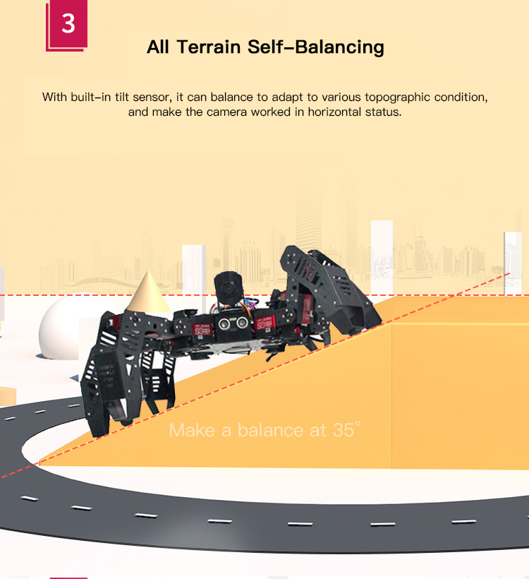 - Tilt Sensor: Used to measure the horizontal angle and detect the current status of the robot.