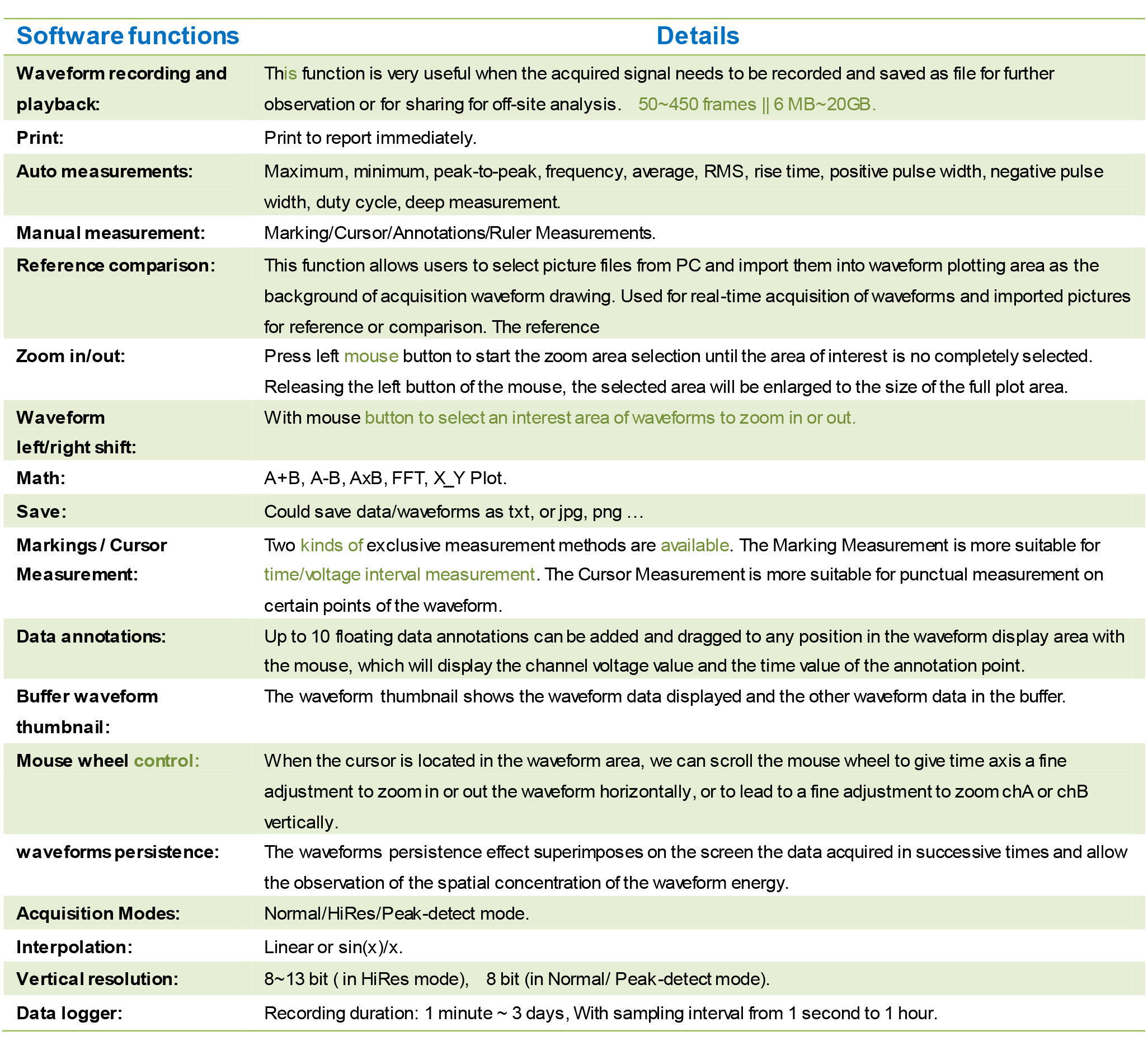 With 100MS/s sampling rate and 35MHz bandwidth, OSCA02 will fit most of your testing needs. With OSCA02 PC-based oscilloscope, you can combine it with logic analyzer module as OSCA02L. OSCA02 supports for Windows OS from Win XP to Win 10.
