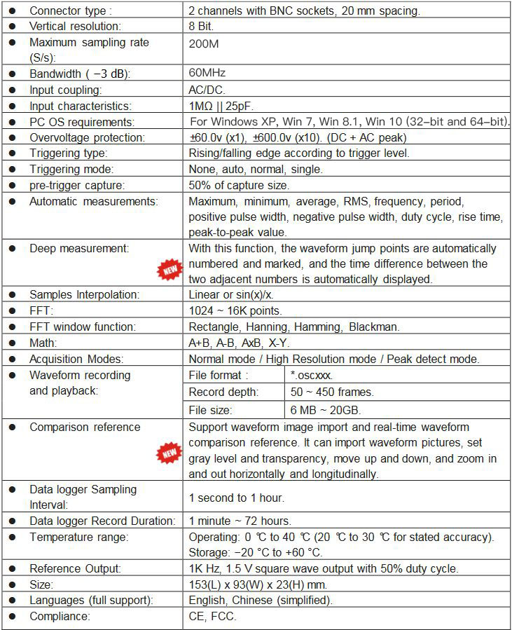 - OSCA02E=Enhanced version. 200MS/s sampling rate, 60MHz Bandwidth, 2-channel.