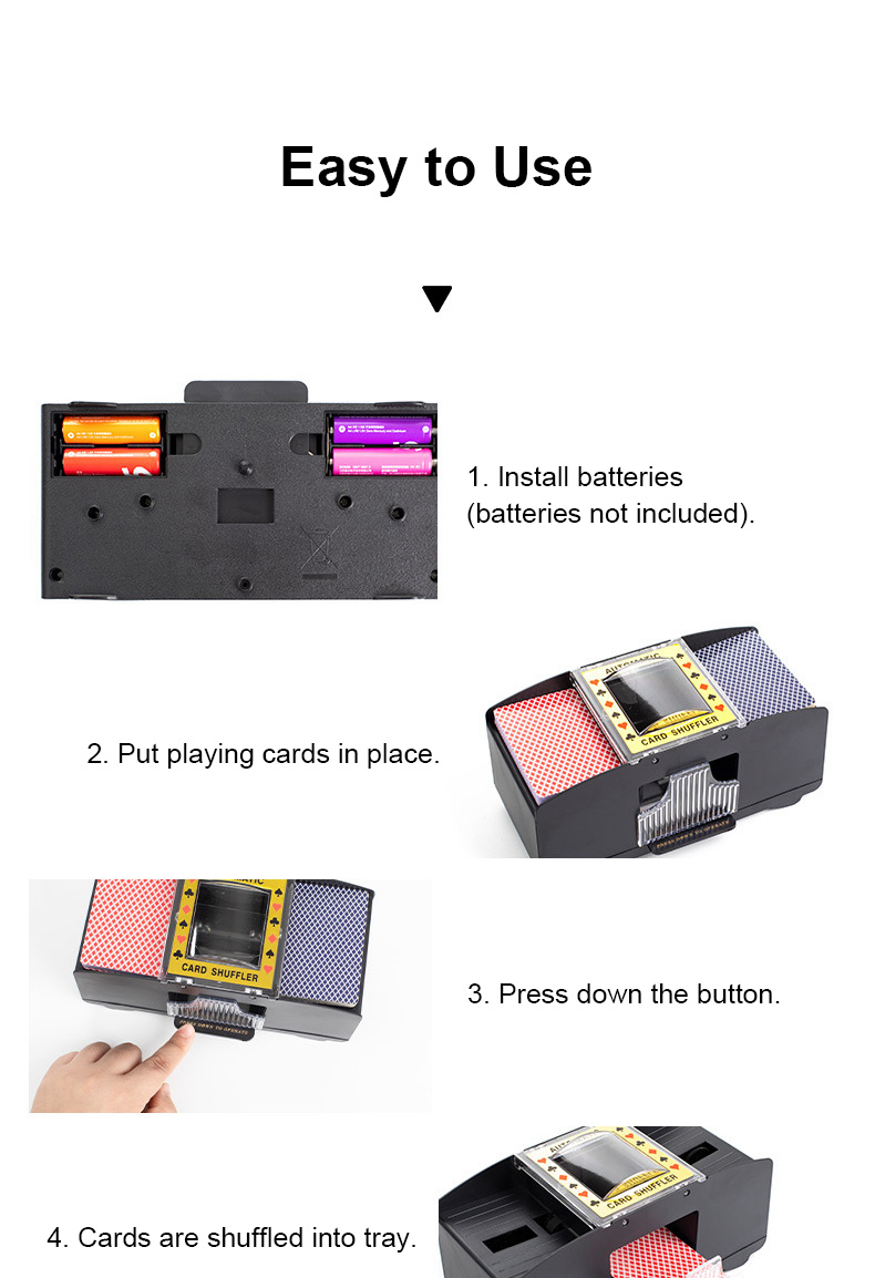 - Easy to use: One-button operation with low noise and more stable performance. Cards are neatly shuffled into tray (cards not included)