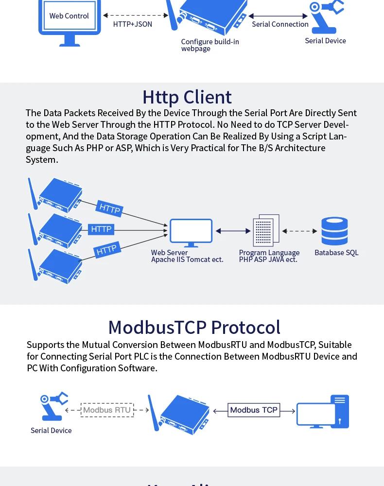 - Support for TCP/IP/Telnet /Modbus TCP protocol