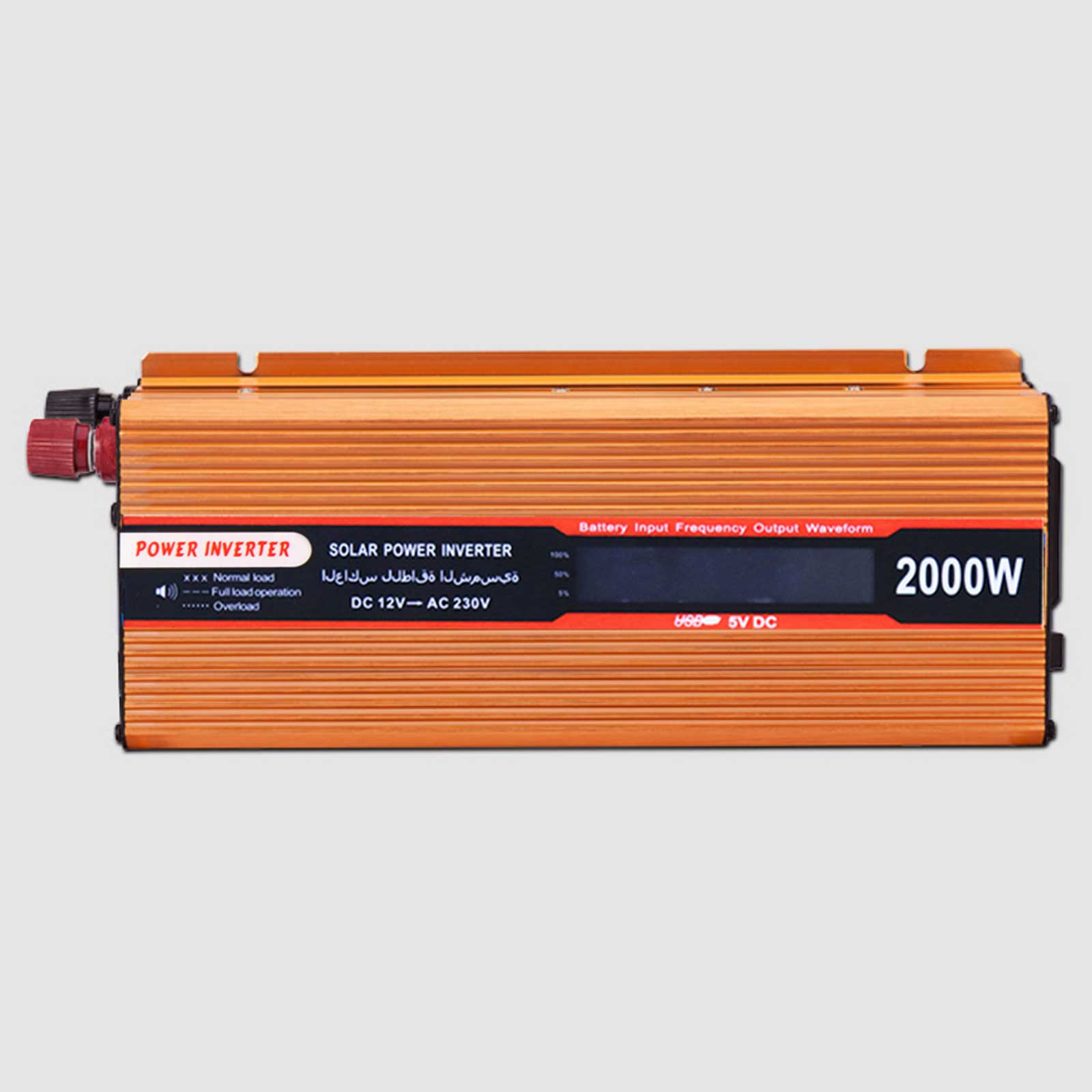 2000W Solar Power Inverter Golden Car Power Inverter Modified Sine Wave LCD Screen DC 12V to AC 220V