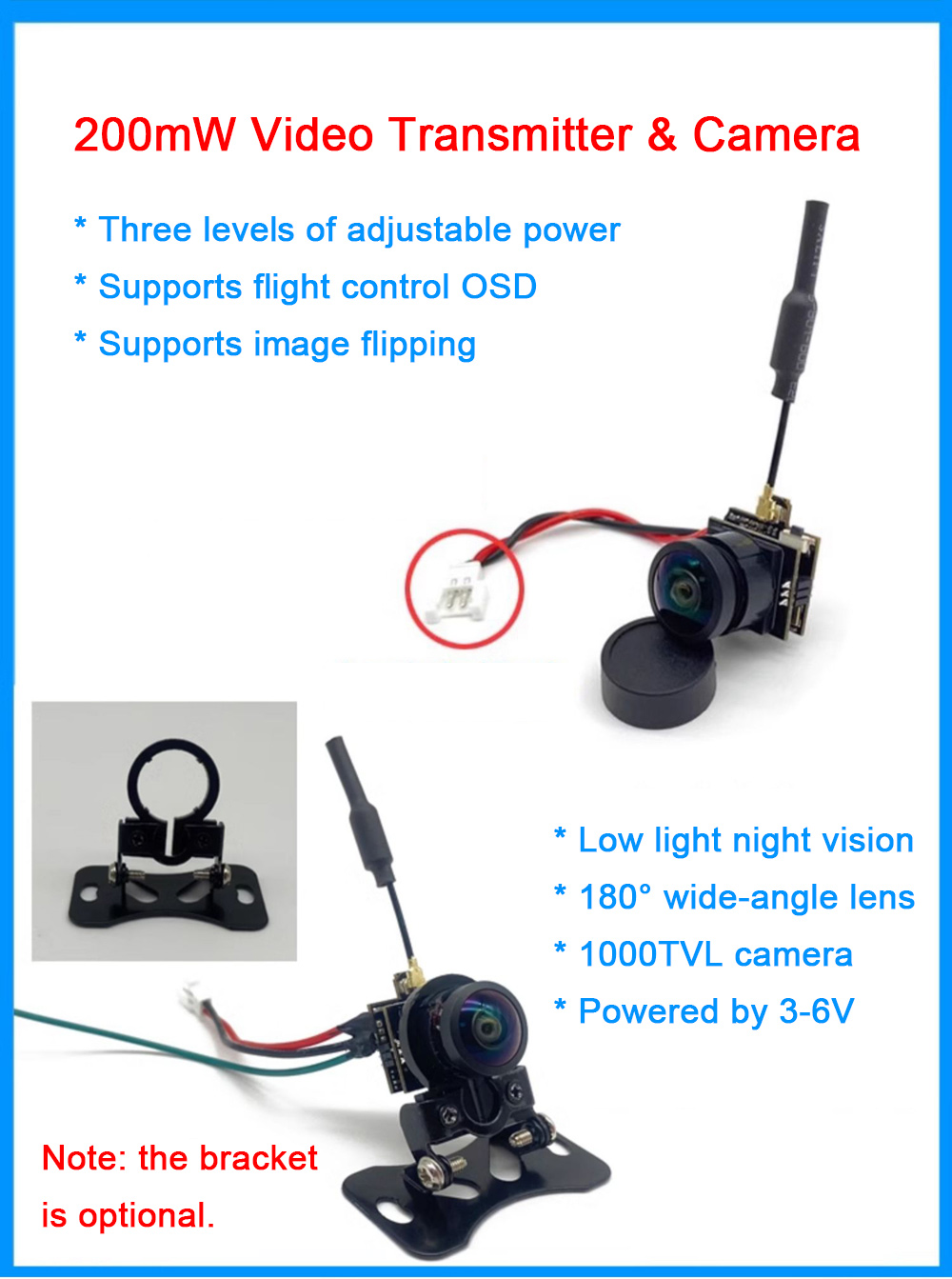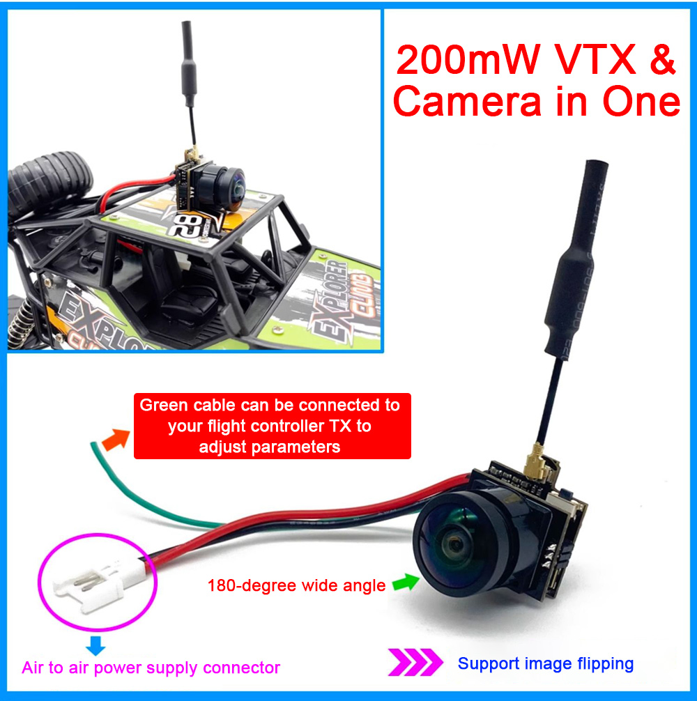 200mW 5.8G 48CH FPV VTX Transmitter Hollow Cup Racing Drone Transmitter & 180° Night Vision Camera