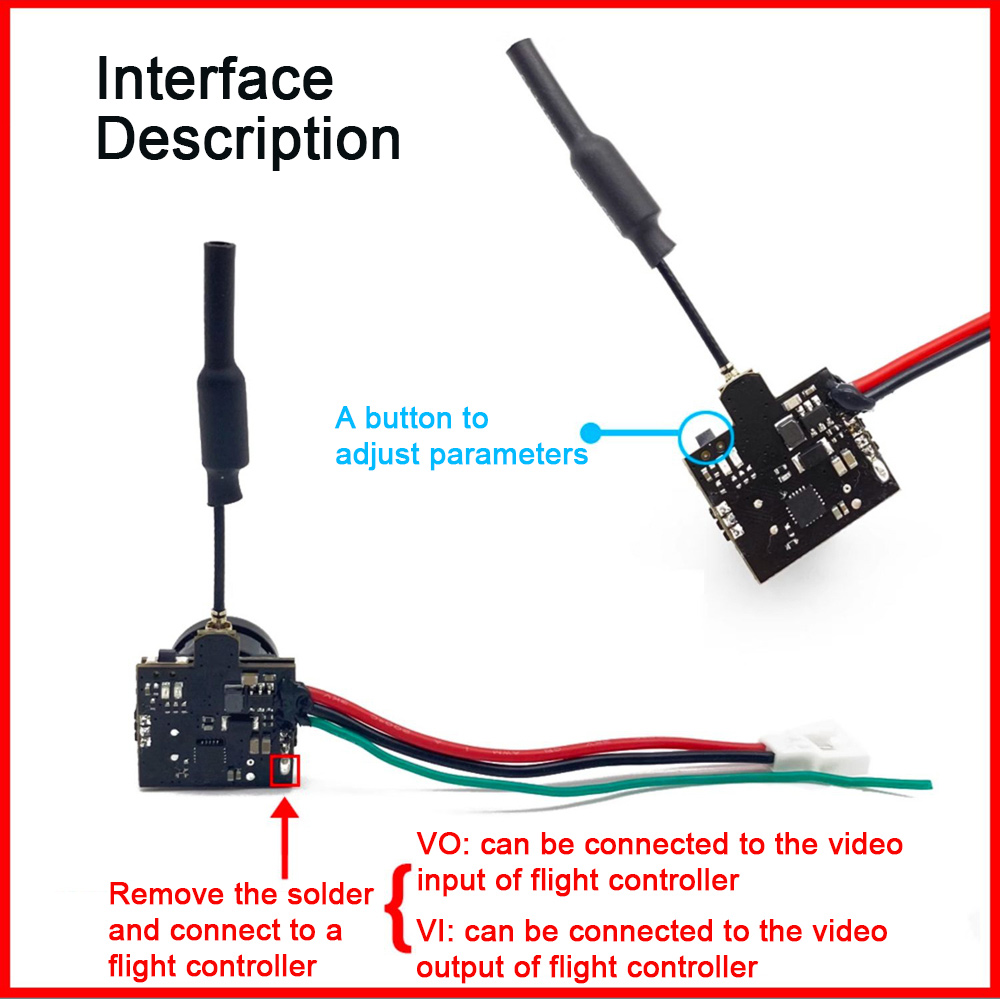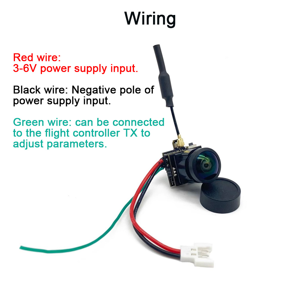 * Green wire: can be connected to the flight controller TX to adjust parameters.