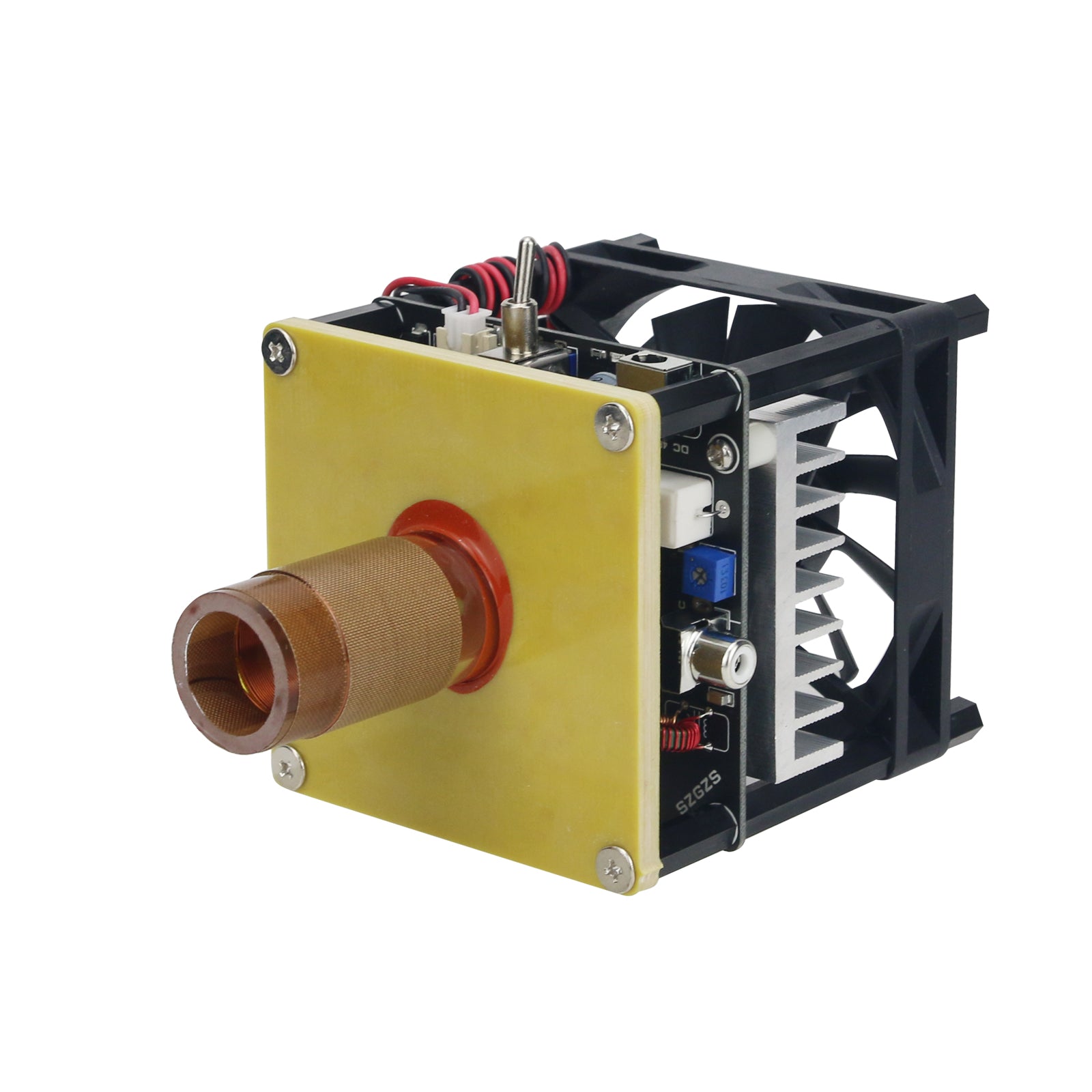 The HFSSTC allows longer running time and it can work continuously for 30 minutes with a single start! Its power can reach around 200W. Product size 80 x 80 x 160mm/3.1 x 3.1 x 6.3". An 8cm/3.1" fan is used to dissipate heat for the overall circuit. The resonant coil and the secondary coil are made of C+ high temperature resistant enameled wire, which will not turn black after long-term operation. The secondary coil bobbin adopts a premium quartz bobbin which is resistant to 1700℃. It adopts an integrated design and uses a CNC machine tool to process the coil base. The secondary coil is not independent, because it is resistant to high temperature.