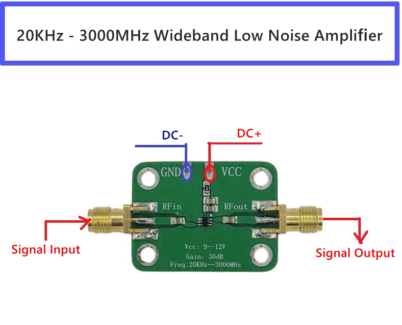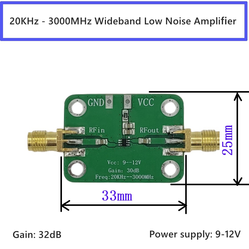 20KHz - 3000MHz RF Wide Band LNA Low Noise Amplifier 32dB High Gain with SMA Female Connector