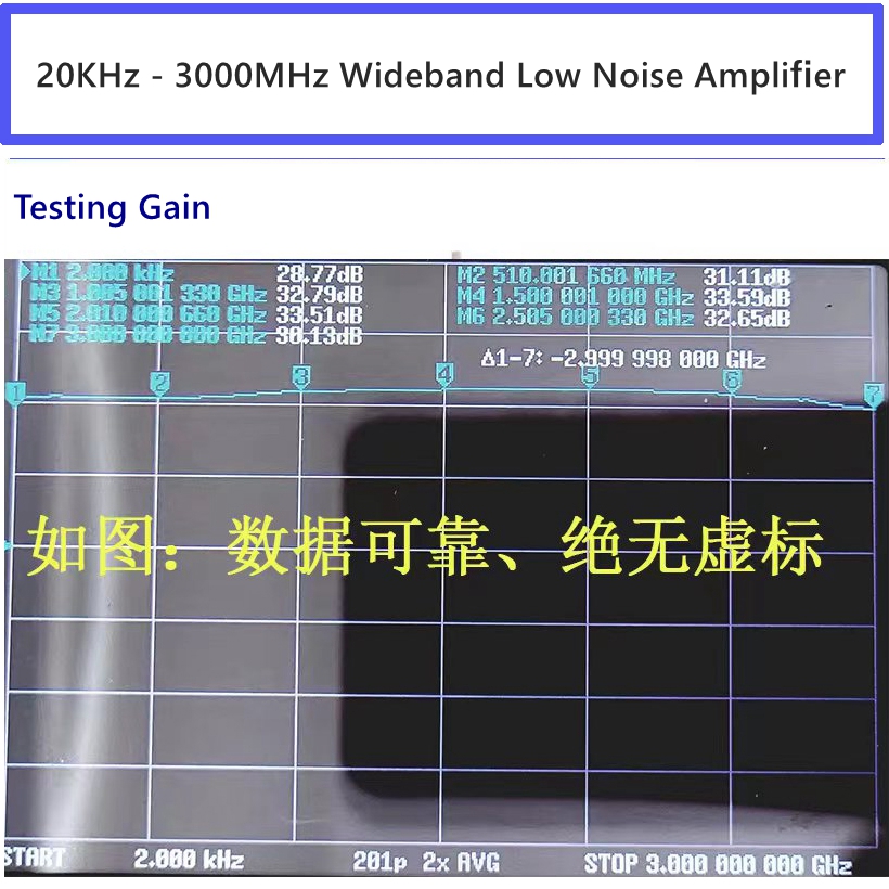 - The amplifier has high flatness in the band, especially in the operating bandwidth of 100KHz-500MHz, which has a superior flatness of less than 1dB.