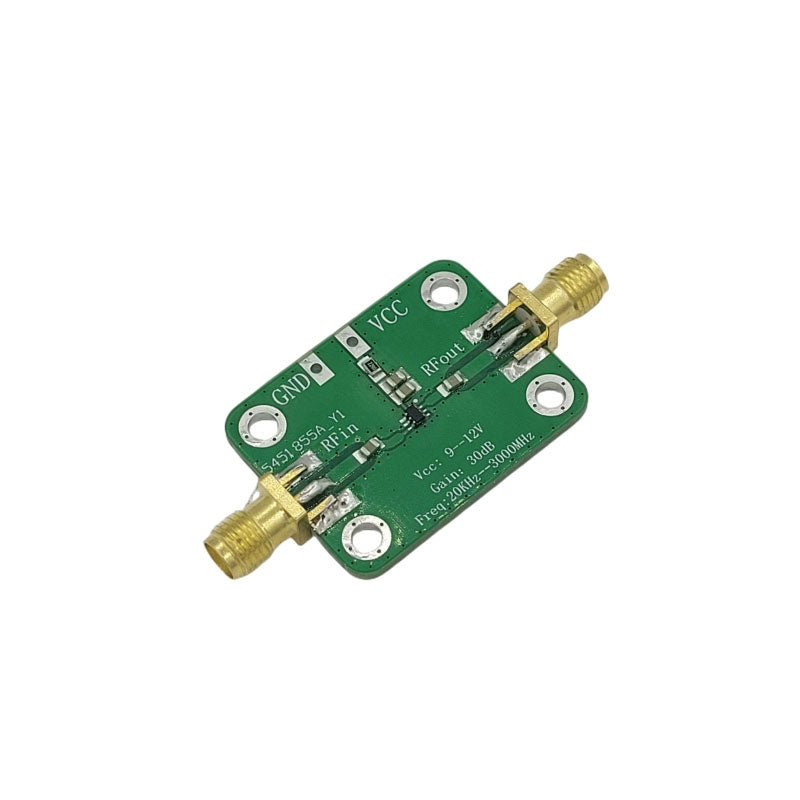 - This amplifier has the advantages of wide frequency range, high gain, and low noise figure, and can be used in various RF reception front-end to increase communication distance. Places that require low noise and small signal RF amplification, such as large-scale shortwave, FM broadcasting, remote control receivers, and cable TV signal amplifiers.