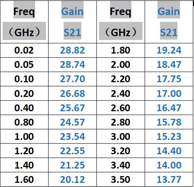 - Input and output impedance: 50ohm