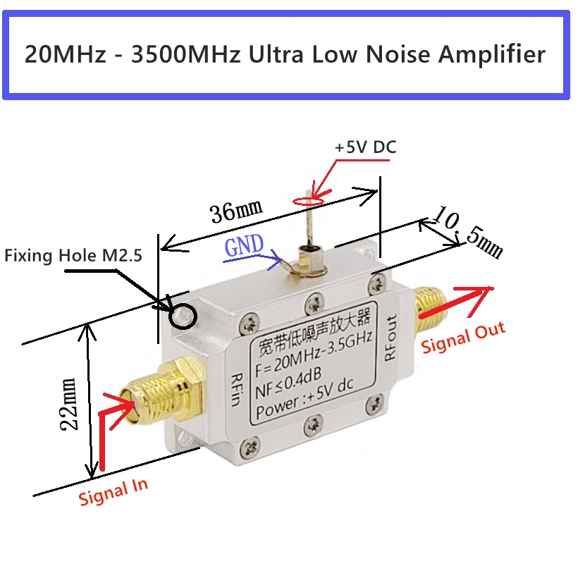 20MHz - 3500MHz LNA Low Noise Amplifier RF Amplifier Module SMA Female Connector (with Welded Power Supply Module)